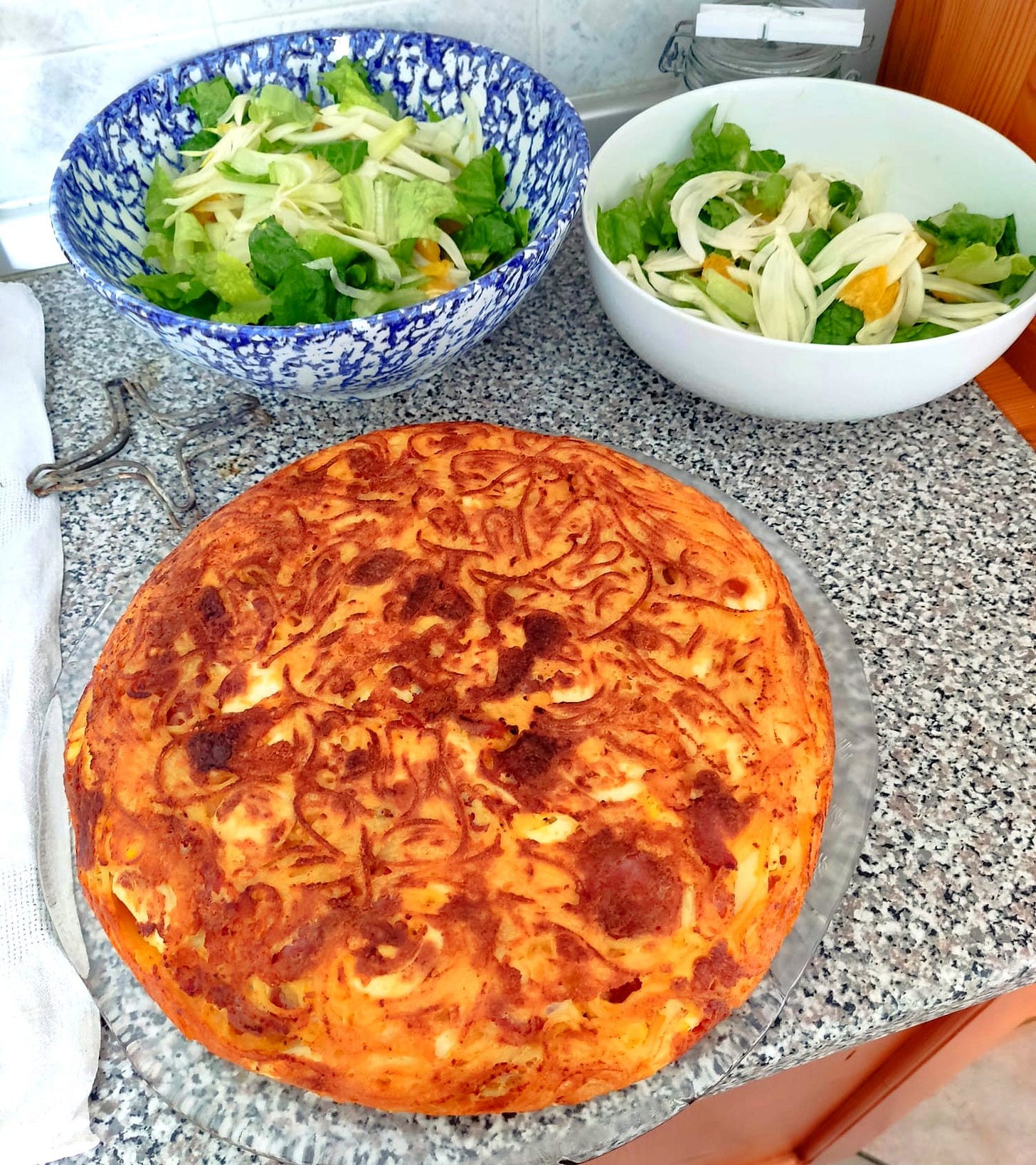 Si les digo que yo amo esta tortilla de pasta es poco, me parece que es uno de los platos rústicos más apetitosos del mundo; les voy a pasar la receta en estos días para que puedan replicarla en sus casas, aunque estoy consciente que lleva productos locales, preguntaré por los productos sustitutos para los que estén fuera de Italia.