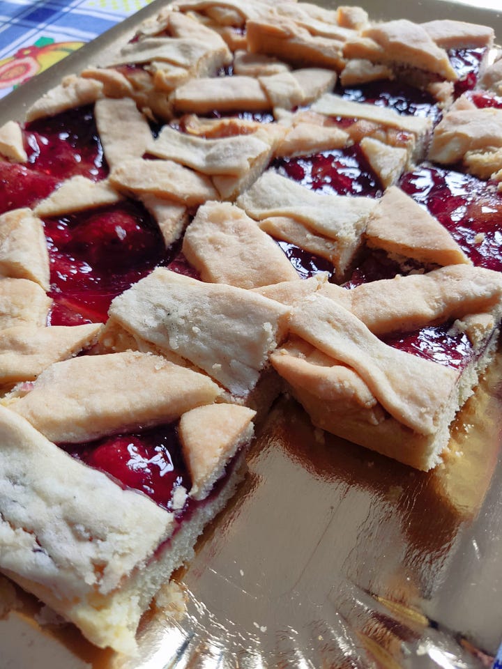 Y no podían faltar los dulces. Dos clásicos: crostata di ciliegie (a la izquierda) y chiacchiere (a la derecha).