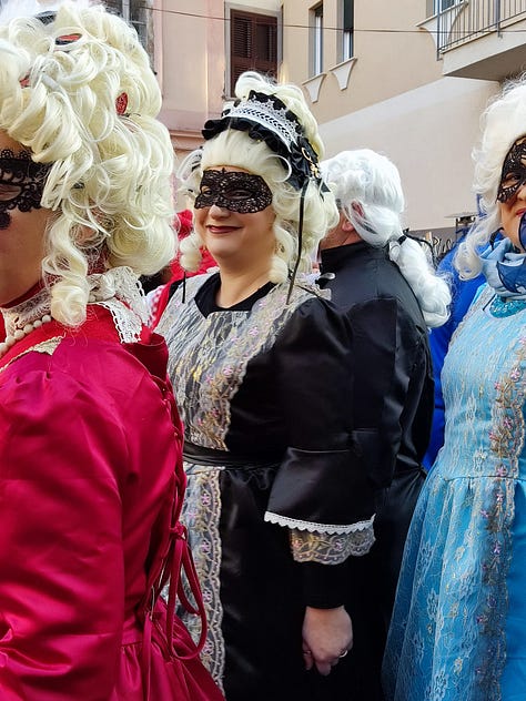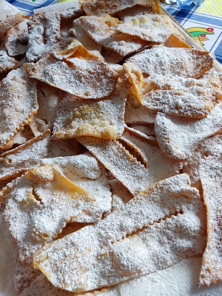 Además de la salida a la calle a pasear y disfrutar, aquí el martes se hace la famosa Frittata di Carnevale. En mi casa la haremos este domingo, pero fuimos a probarla a casa de una prima. Hizo dos tipos: la clásica y la vegetariana.